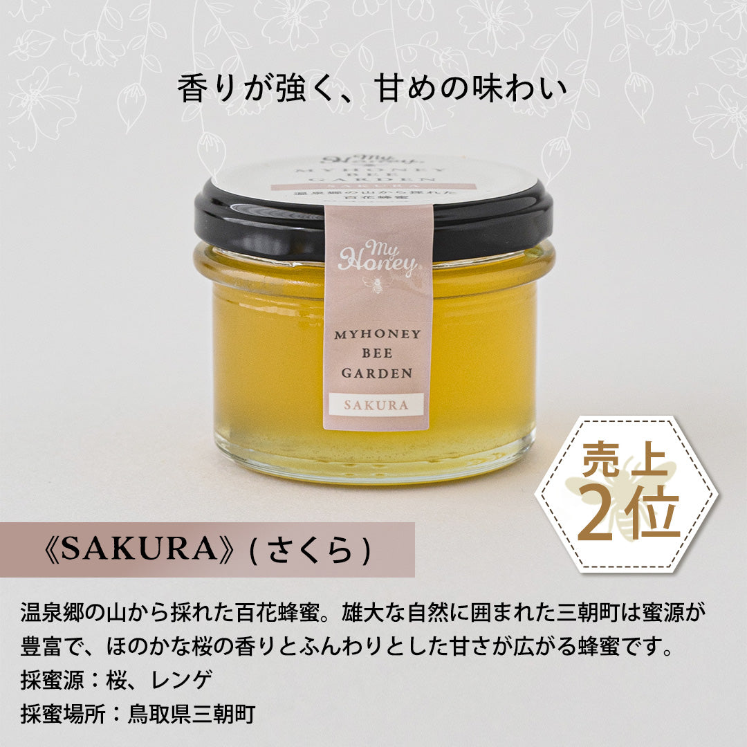 雄大な自然に囲まれた三朝町は蜜源が豊富で、ほのかな桜の香りとふんわりとした甘さが広がる蜂蜜です。