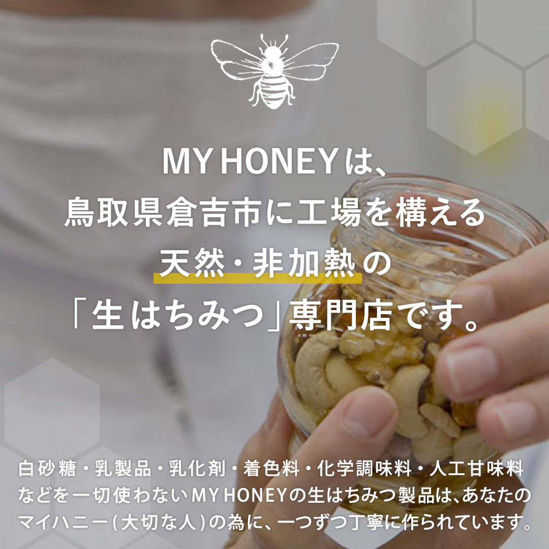 MYHONEYのはちみつはすべて、天然・非加熱の生はちみつのため、